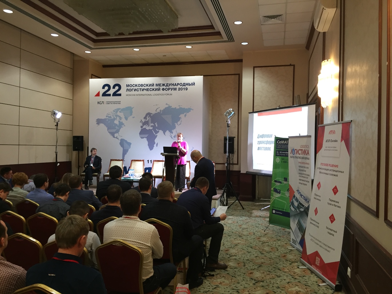 Светодиодная подсветка выступающих на сцене во время конференции в бизнес-отеле Аэростар 14.02.2019.